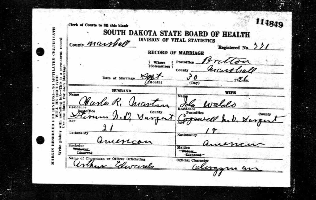 Fun fact: Charlie and Ida were married on my birthday, September 30th, in 1926 in Britton, South Dakota.