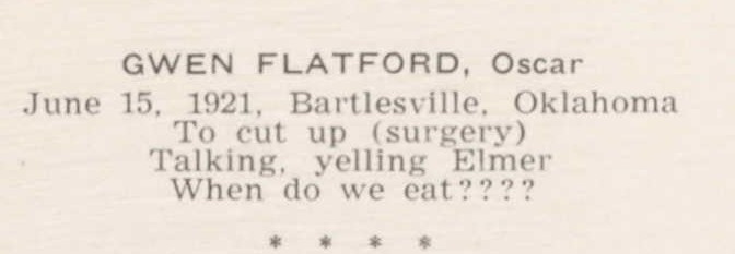 The photo above is very likely the Gwen we are looking for. She was born in Bartlesville, Oklahoma in 1921 where she lived with her parents and 3 siblings.