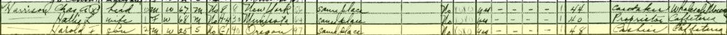 If we go back to the 1940 census, Harold was living with his parents (dad listed as Chas). Chas is listed as a caretake for a wholesale (?), Hattie was a proprietor at a cafeteria, and Harold was a cashier, likely at the same cafeteria that his mom worked at.