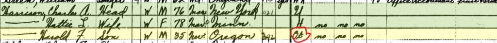 Harold Farnum Harrison (Farnum was mom’s maiden name) was the son of C. A. Harrison. I then took to ancestry to see if I could find any more information about Harold’s death. According to the Find a Grave index, Harold was born in 1914 in Oregon to Charles Albert Harrison and Hattie Lillian Harrison. The 1950 federal census for Minneapolis shows Harold, at 35, living with his parents and had “Ot” listed for work. Ot stands for “Other, indicating that a person’s primary activity during the week was not categorized as working, keeping house, or being unable to work.” He could have, for example, been attending school, temporary illness, or being on vacation.