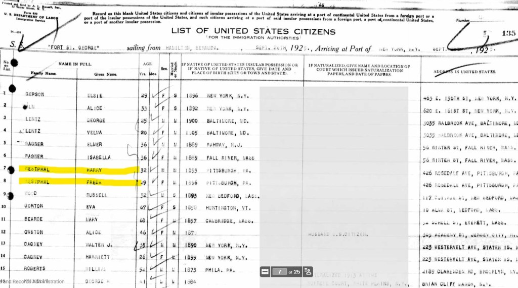 Freda and Henry went to Bermuda on their honeymoon and there are census reports from 1930-1950 documenting the lives of the family. Freda and Henry had 2 (possibly 3) children together, making 4 total for Henry.