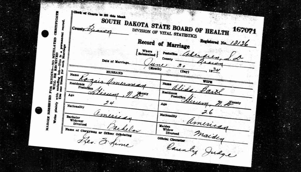In 1934 Rozair and Alida Bartl got married in Stirum which leads me to believe that Rozair had made his way south, a four and a half hour car ride today, and met Anna in Stirum. He would have only lived in Cando for a couple of years. People bounced around a lot in North Dakota in the early 1900s because they needed to go where the work was. Stirum is where they would end up raising their family, eventually moving into Forman. I have visited both places many, many times.