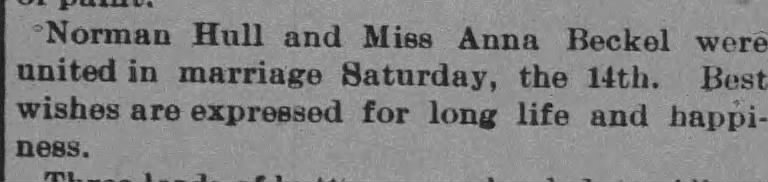 After careful inspection, it appears that Rozair’s mother, Anna, was married previously to a Norman Hull who died in 1901. I went back to the 1900 census which has Anna living with Ernest Amerman, their first three children, and Myrton and Lillian Hull – who are listed as step-children to the head of the household (Ernest). The facts suggest that Anna and Norman, who were married in 1895, got divorced, she took the kids, married Ernest Amerman and then Norman passed away. I have not been able to find a cause of death.